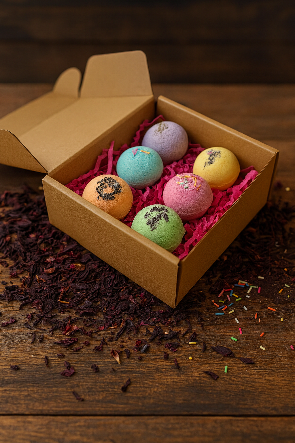 El yapımı bitkili banyo bombalarımızla evinizde lüks bir spa deneyimi yaşayın! 🌿 Her bir bombanın üzerinde lavanta taneleri, hibiscus yaprakları veya doğal bitki parçacıkları bulunur. Köpüklenerek çözülür, cildinizi besler ve derin bir rahatlama sağlarken bitkisel dokunuşuyla banyonuza görsel bir şölen katar.